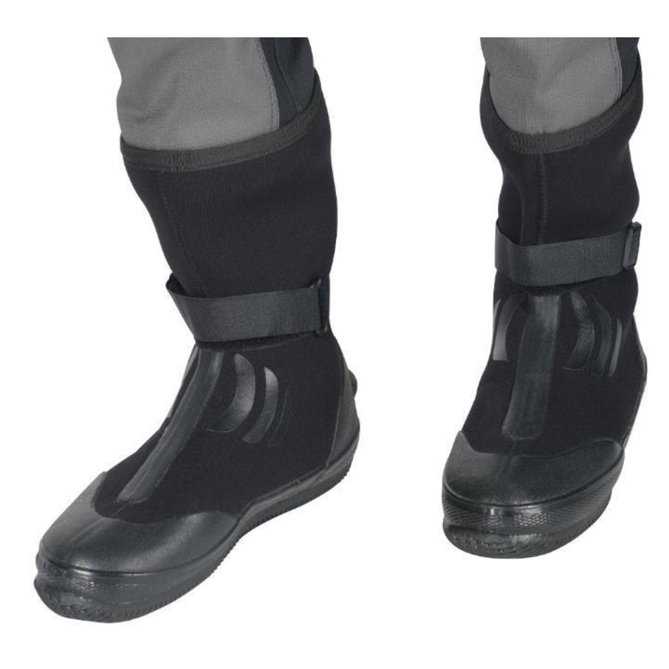 Boots: Made of 6 mm neoprene for thermal insulation. Reinforced with vulcanized rubber on the heel, toe, and instep for superior durability.
