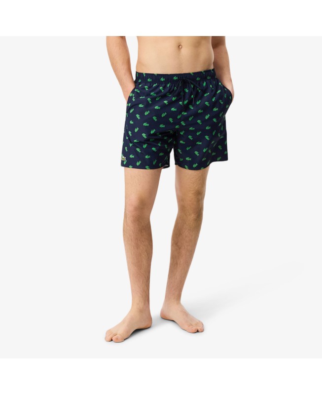 Lacoste mid-length swim trunks with crocodile print for Men MH1851