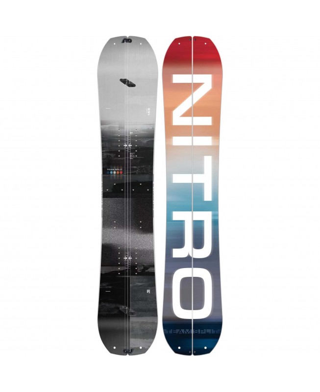 Introducing the first resort splitboard, the Nitro Team Splitboard, designed for riders looking for a versatile splitboard that they can use on and off the marked trails, in and out of bounds. The concept is simple a splitboard that rides like a regular snowboard so it can be enjoyed as a daily driver with the possibility to reach those distant peaks with speed and ease.The new Nitro Team splitboard allows anyone to enjoy regular chair lift days at the resort on a comfortable and versatile snowboard, but with the added benefit of being able to tour out beyond the marked trails to reach those distant peaks if desired. Team Splitboard riders also can just skip the resort on a busy weekend and go for a backcountry tour in search of fresh runs and new views. The Team Splits Dual Degressive Sidecut, Directional Twin Shape, and Progressive Widths make this board feel like your regular resort cruiser. Meanwhile, the Trüe camber and Standard Core profile give you the hiking kick and riding support needed for touring up and riding down. Fully equipped with Nitro´s durable Tail and Tip Locks, Forged T7075 Aluminum Hooks, and Nitro x Kohla Attachment System to allow you to transition into splitboarding hike mode whenever you feel like it. You just have to remember to have your backcountry gear and custom precut Nitro x Kohla Peak skins in your backpack. Before, people would have to choose between getting a new splitboard or regular snowboard or must choose one or the other. Now you do not have to invest in both or choose between a splitboard or a resort snowboard set-up – you can finally get an all-mountain versatile board that does it all - The New Nitro Team Split!For the ultimate splitboarding experience, use the precut Nitro x Kohla Peak Skins that fit each Team Splitboard size perfectly – equipped with a mix of 64% Mohair and 35% synthetic Nylon fibers providing the perfect slide to grip ratio to get you up faster.