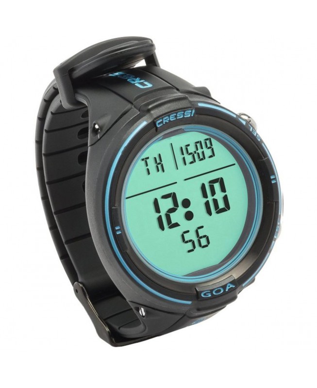 Con un diametro della cassa di soli 48 mm ed un display di 35mm ad alto contrasto goa è un computer orologio per immersioni scuba/apnea dalle dimensioni estremamente ridotte. È lo strumento ideale per essere usato anche al di fuori dell’attività subacquea grazie alla possibilità di disattivare le funzioni dive per evitare inutili allarmi durante lo snorkelling o nuoto. Il vetro è minerale e presenta una cassa tipo heavy duty con pulsanti in acciaio per una resistenza in acqua fino a 120 m cinturino in gomma con fi bbia in acciaio inox. Ghiera e fondello in plastica/acciaio.