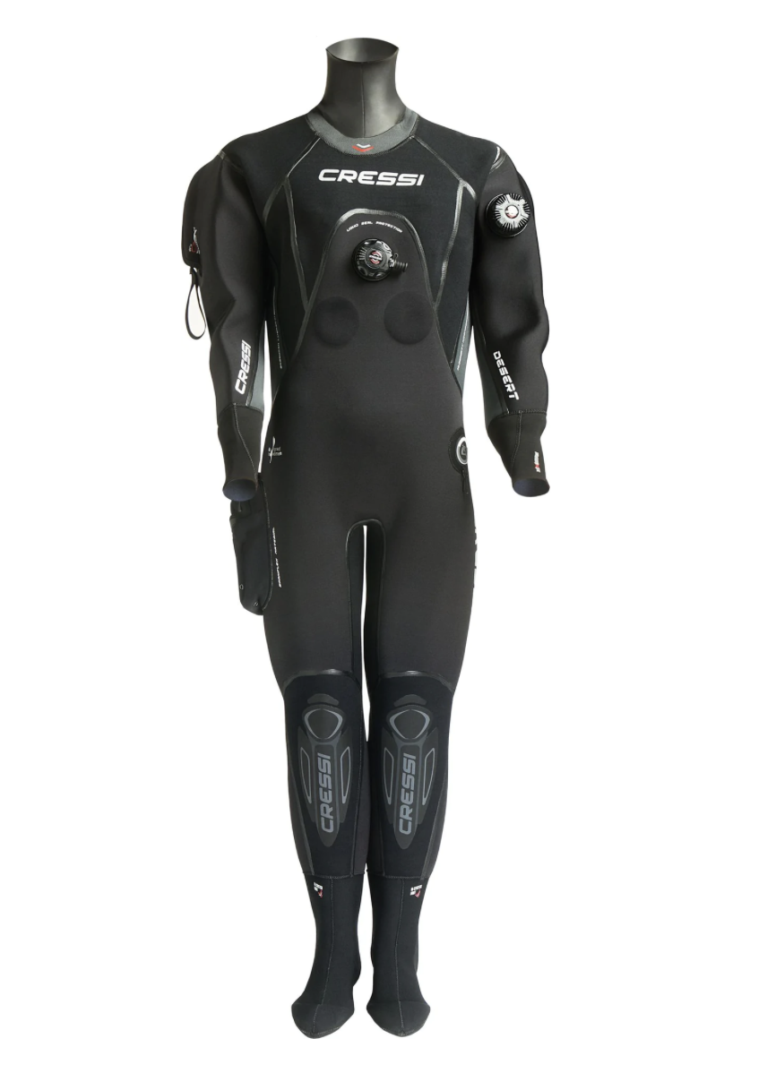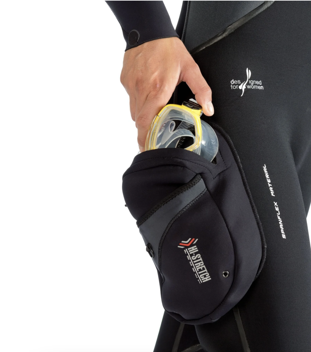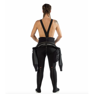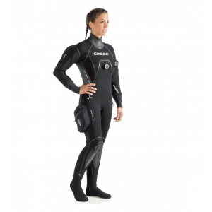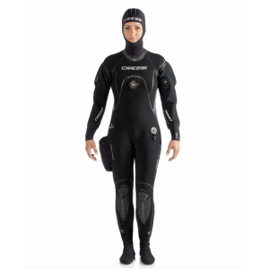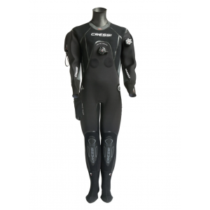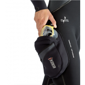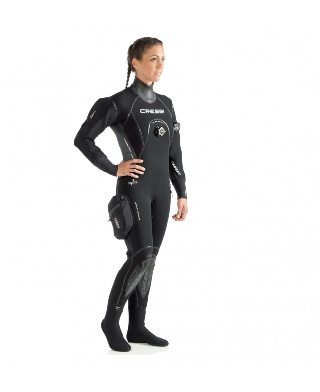 Muta stagna particolarmente comoda, ma allo stesso tempo molto robusta grazie al suo speciale neoprene precompresso hight-density da 4 mm di spessore ed alle speciali giunture cucite e rinforzate con sistema liquid seal protection. Un particolare strato di polimero elastico viene depositato sulle cuciture e sulla fodera esterna del neoprene in modo da creare una barriera impenetrabile all’acqua e nello stesso tempo una maggior resistenza dei punti di giuntura. All’interno un ulteriore sigillatura a bandella garantisce la totale impermeabilità. Questo doppio sistema di tenuta è stato studiato appositamente per soddisfare i subacquei più esigenti ed esperti che spesso si trovano in circostanze di notevole sollecitazione della muta come ambienti di lavoro o climi estremi. A completare queste peculiari caratteristiche uno speciale tessuto spanfl ex è stato impiegato nella parte esterna per aumentare le doti di elasticità e di resistenza all’abrasione. I polsini sono realizzati in neoprene liscio da 3. 5 mm con smooth-skin all’interno per migliorare la tenuta e ultraspan all’esterno per migliorare l’elasticità. Il collo è realizzato con gli stessi materiali, ma con neoprene di 2. 5 mm per migliorare il comfort e agevolare la respirazione una volta risvoltato. Le spalle, il girocollo e le ginocchia sono rinforzati con una speciale fodera anti abrasione x-diamond pad. La muta viene fornita con una pratica tasca portaoggetti sulla gamba destra ed un comodo cappuccio