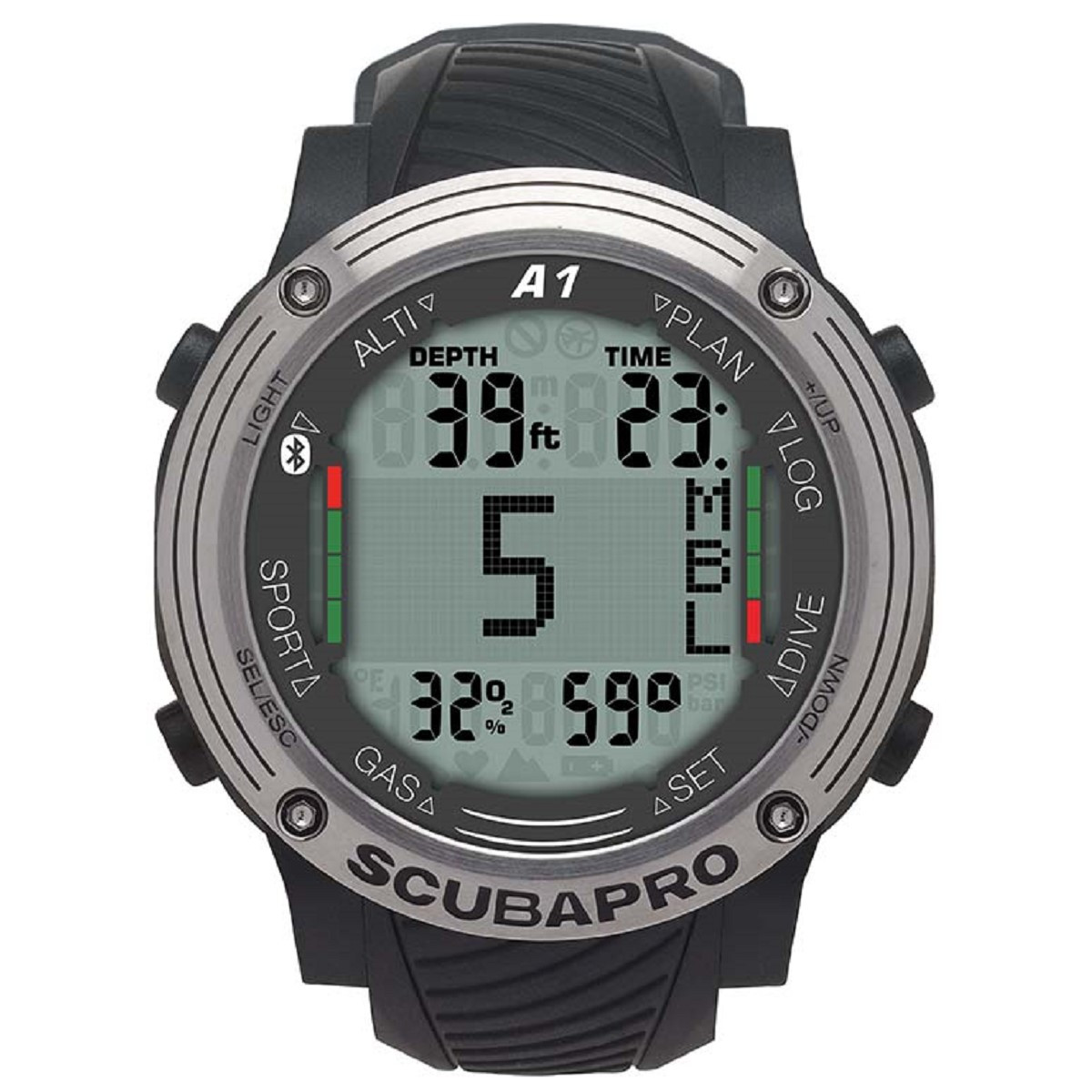 A1 offre funzioni cronometriche complete e tre modalità di immersione, oltre a una modalità Sport. Un sistema di menu intuitivo e pulsanti di controllo chiaramente identificati agevolano l’accesso e la comprensione delle funzioni. Offrendo il giusto equilibrio tra caratteristiche apprezzabili in superficie, funzioni subacquee e facilità d’uso, A1 diverrà presto un elemento imprescindibile sia nella vita subacquea, sia nella vita quotidiana.