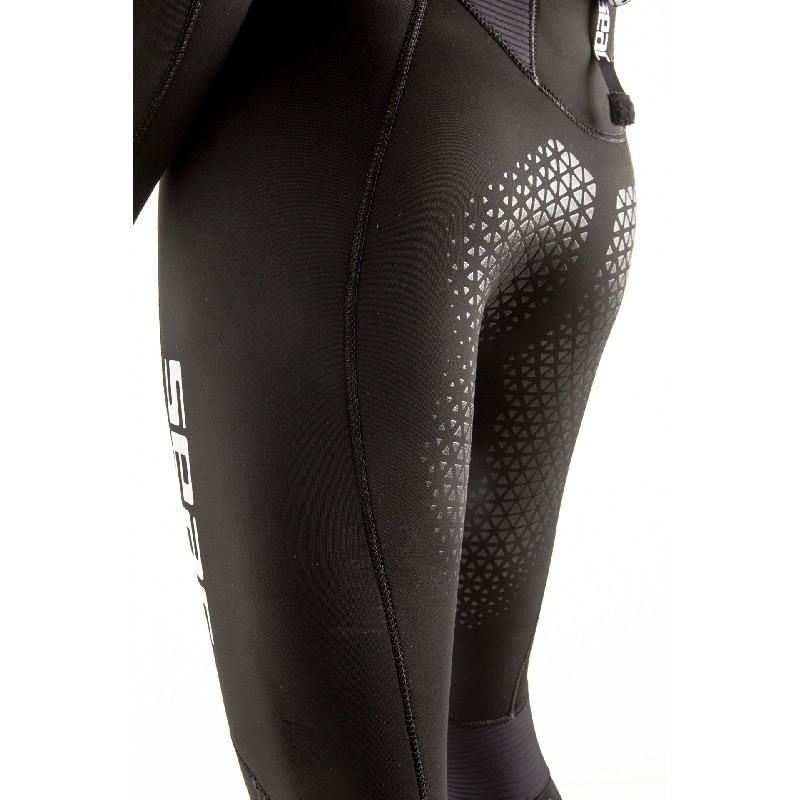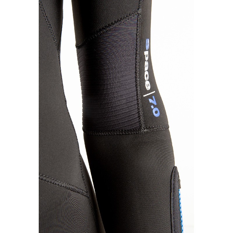 Su polsini e caviglie il sistema Aquastop è a doppio cono di neoprene con cerniera. Seac Space consente ampia libertà di movimento, grazie anche agli inserti goffrati in corrispondenza dell'interno dei gomiti e dietro le ginocchia.