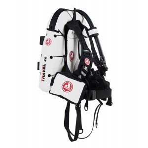 Travel 15 lt. realizzato in Cordura, tasche orizzontali 1 zip porta zavorra o oggetti, inflator con valvola di scarico, fibbie posteriori in nylon